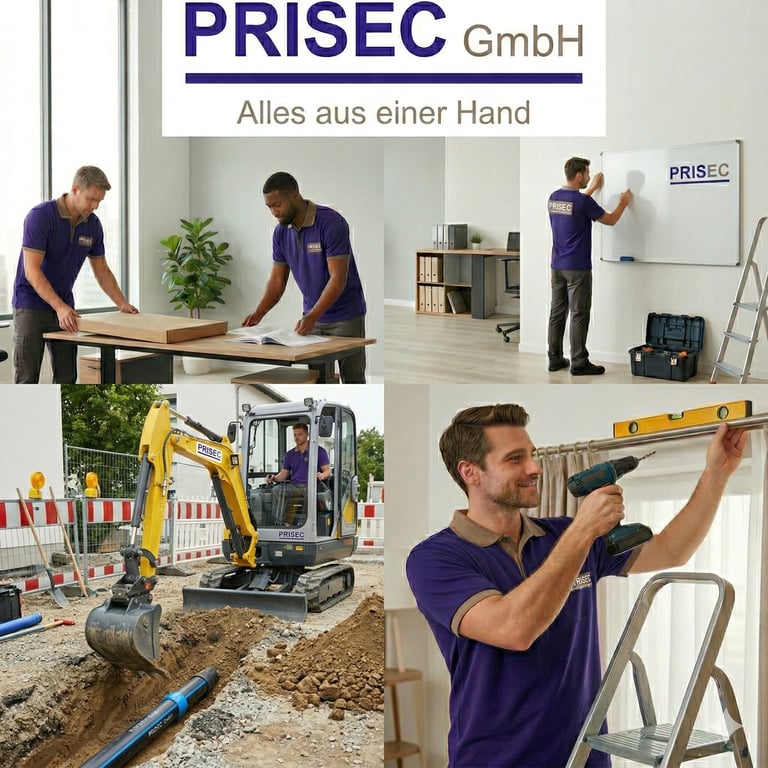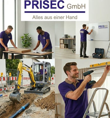 Die PriSec GmbH steht für vielseitige Dienstleistungen aus einer Hand – für Unternehmen und Privatpersonen. Wir verbinden handwerkliche Praxis, Lager- und Logistik-Know-how, Sicherheitskompetenz und moderne Serviceleistungen zu einem flexiblen Gesamtangebot, das sich genau an Ihrem Bedarf orientiert.Wir führen nicht erlaubnispflichtige Handwerksdienstleistungen aus, etwa kleinere Reparaturen, Montagearbeiten, Renovierungshilfen und einfache Instandhaltungsaufgaben.